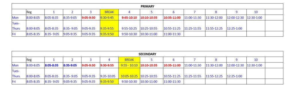 T-Th: 7:15 a.m. - 2:20 p.m.